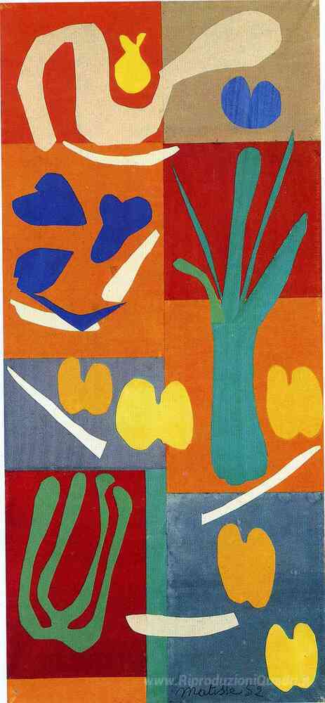 Ti offriamo una riproduzione artigianale su tela dell'opera famosa 'Verdure' di Henri Matisse, dal Museo delle Riproduzioni.