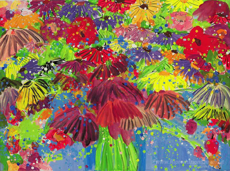 Ti offriamo una riproduzione artigianale su tela dell'opera famosa 'Amo Crisantemi' di Walasse Ting, dal Museo delle Riproduzioni.