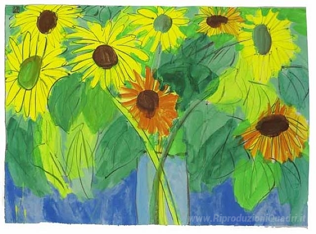 Ti offriamo una riproduzione artigianale su tela dell'opera famosa 'Arancio e giallo Girasoli' di Walasse Ting, dal Museo delle Riproduzioni.