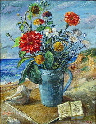 Ti offriamo una riproduzione artigianale su tela dell'opera famosa 'Fiori by the Sea' di David Burliuk, dal Museo delle Riproduzioni.