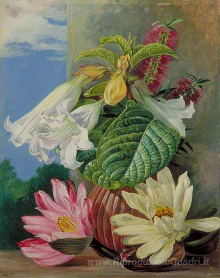 Ti offriamo una riproduzione artigianale su tela dell'opera famosa 'Fiori coltivati ??nel giardino botanico, Rio de Janeiro, Brasile' di Marianne North, dal Museo delle Riproduzioni.