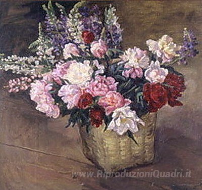 Ti offriamo una riproduzione artigianale su tela dell'opera famosa 'Fiori' di Pyotr Konchalovsky, dal Museo delle Riproduzioni.