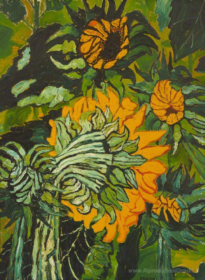 Ti offriamo una riproduzione artigianale su tela dell'opera famosa 'Girasoli' di John Bratby, dal Museo delle Riproduzioni.