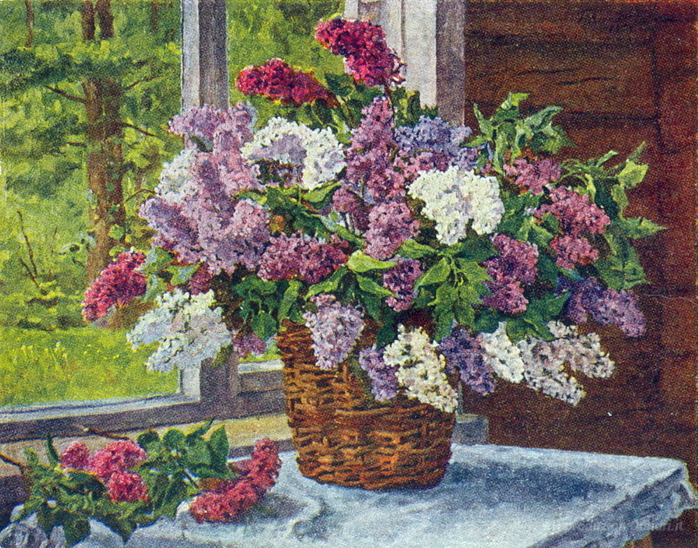 Ti offriamo una riproduzione artigianale su tela dell'opera famosa 'Lillà dalla finestra' di Pyotr Konchalovsky, dal Museo delle Riproduzioni.