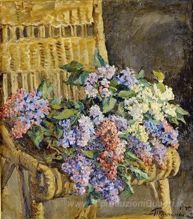 Il suo stile unico, che fonde il realismo con tocchi di impressionismo, riesce a trasformare ogni angolo della casa in un ambiente caldo e accogliente. Lilla nella sedia di vimini non è solo un'opera d'arte, ma una dichiarazione di amore per la bellezza naturale, capace di arricchire qualsiasi spazio, rendendolo più elegante e raffinato. Il suo fascino senza tempo sarà un prezioso elemento decorativo per garantire un'atmosfera unica nel vostro ambiente.