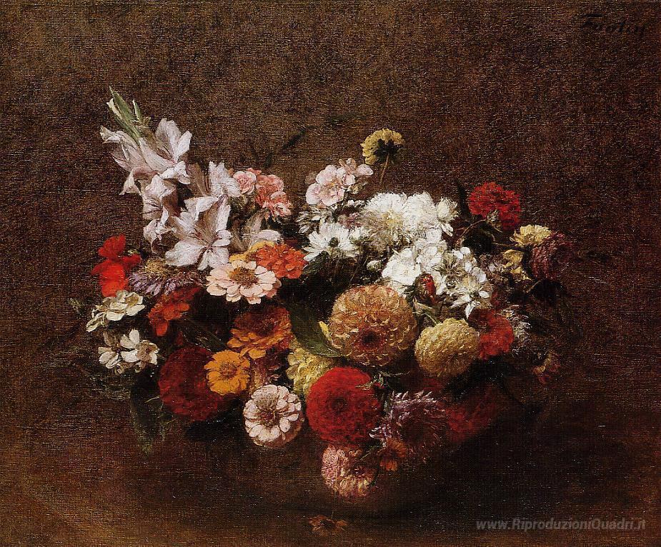 Ti offriamo una riproduzione artigianale su tela dell'opera famosa 'Mazzo di fiori' di Henri Fantin-Latour, dal Museo delle Riproduzioni.
