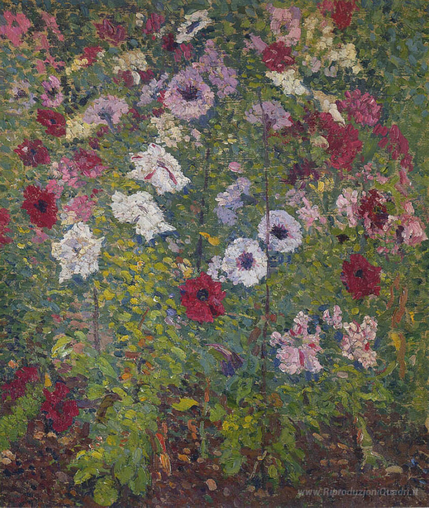 Scopri l'eleganza dell’arte italiana attraverso i raffinati Mazzo di fiori dell'artista Henri Martin. Questo straordinario dipinto a olio cattura l'essenza della bellezza naturale, immergendo lo spettatore in un tripudio di colori vividi e dettagli meticolosi che richiamano la delicatezza dei fiori. Martin, uno dei più noti esponenti del post-impressionismo, utilizza una tecnica a pennello che esalta la luminosità e la freschezza degli elementi naturali, creando un'atmosfera unica e avvolgente.