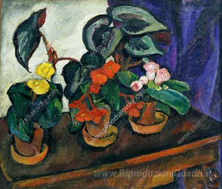 Ti offriamo una riproduzione artigianale su tela dell'opera famosa 'Natura morta. Begonie.' di Pyotr Konchalovsky, dal Museo delle Riproduzioni.