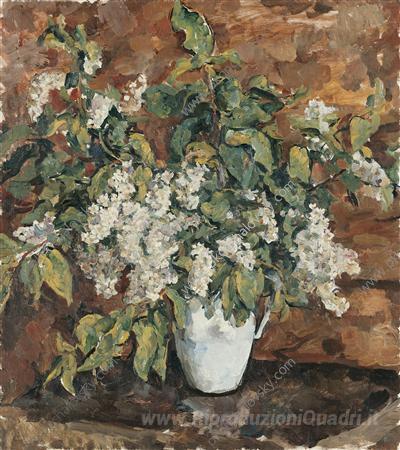 Benvenuti nella nostra selezione esclusiva di dipinti a olio italiani, dove l'arte si fonde con l'eleganza per arricchire ogni ambiente. Oggi vi introduciamo a un'opera straordinaria: Natura morta. Bird cherry dell'artista Pyotr Konchalovsky. Questo dipinto incarna la maestria dell'artista, che con abile tecnica e profonda sensibilità cromatica, riesce a trasmettere la bellezza della natura attraverso ogni pennellata.