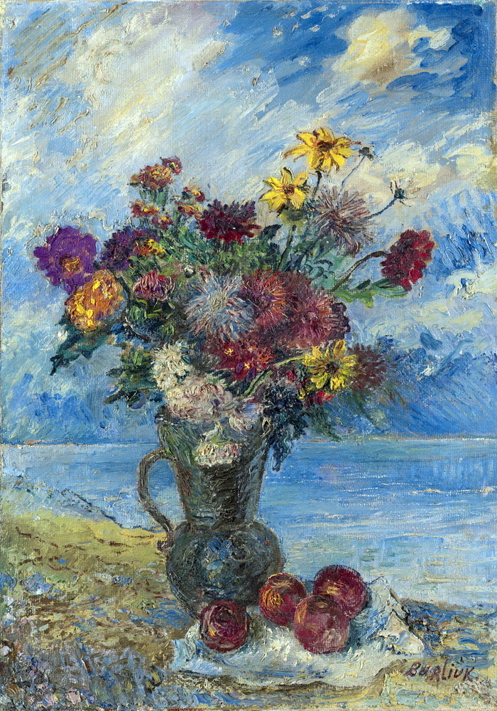 La tecnica di Burliuk, caratterizzata da pennellate audaci e toni vivaci, crea un'atmosfera calda e accogliente, perfetta per arricchire qualsiasi ambiente domestico. Natura morta con mele non è semplicemente una decorazione; è una finestra su una dimensione artistica che invita alla contemplazione e alla serenità. Aggiungi un tocco di eleganza alla tua casa con quest'opera, capace di trasformare ogni spazio in un luogo di ispirazione e bellezza.