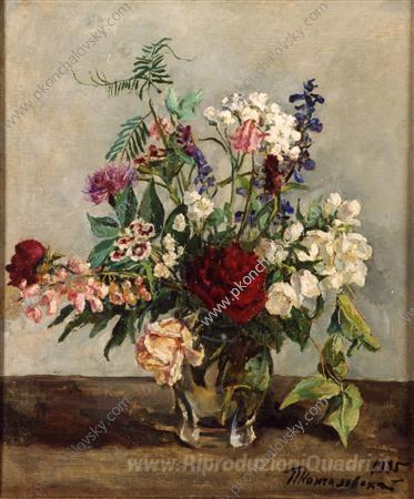 Ti offriamo una riproduzione artigianale su tela dell'opera famosa 'Natura morta. Il bouquet olandese.' di Pyotr Konchalovsky, dal Museo delle Riproduzioni.