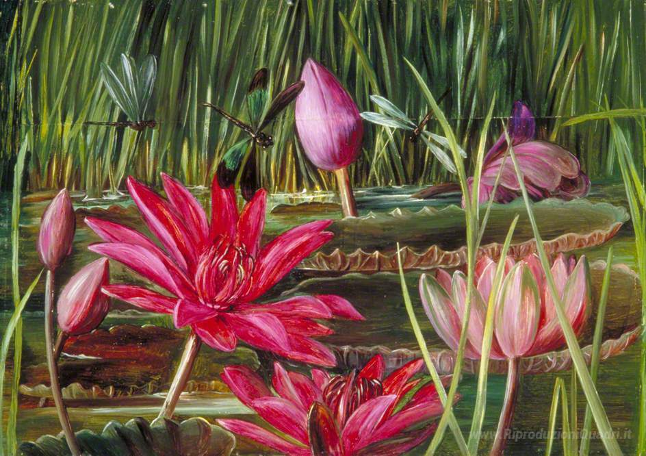 Ti offriamo una riproduzione artigianale su tela dell'opera famosa 'Red Water Lily of sud dell'India' di Marianne North, dal Museo delle Riproduzioni.
