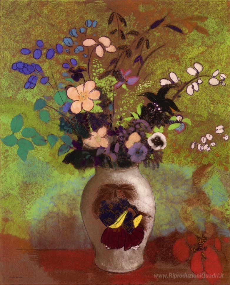 Ti offriamo una riproduzione artigianale su tela dell'opera famosa 'Vaso con Guerriero giapponese' di Odilon Redon, dal Museo delle Riproduzioni.