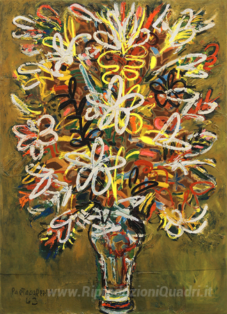 Ti offriamo una riproduzione artigianale su tela dell'opera famosa 'Vaso di fiori' di Rene Portocarrero, dal Museo delle Riproduzioni.