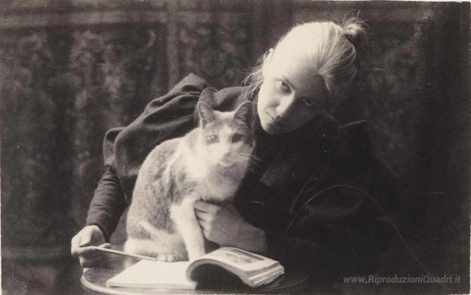 Ti offriamo una riproduzione artigianale su tela dell'opera famosa 'Amelia Van Buren con un gatto' di Thomas Eakins, dal Museo delle Riproduzioni.
