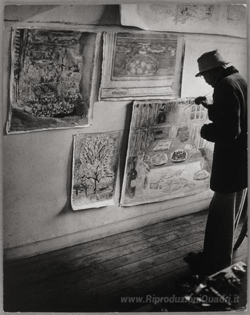 Ti offriamo una riproduzione artigianale su tela dell'opera famosa 'Bonnard peignant ses quatre toiles (dont "l'Amandier")' di Brassai, dal Museo delle Riproduzioni.
