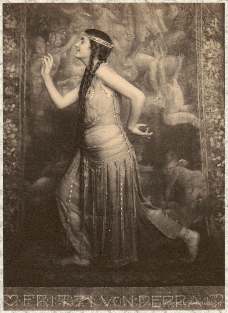 Ti offriamo una riproduzione artigianale su tela dell'opera famosa 'Fritzi von Derra - The Oriental Dancer' di Frank Eugene, dal Museo delle Riproduzioni.