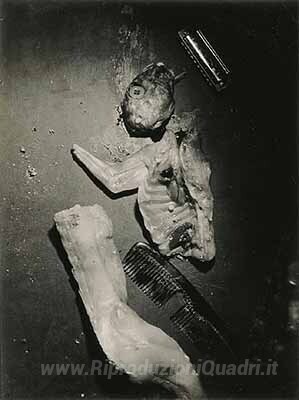 Ti offriamo una riproduzione artigianale su tela dell'opera famosa 'Kaninchen mit Kamm und Mundharmonika' di Wols, dal Museo delle Riproduzioni.