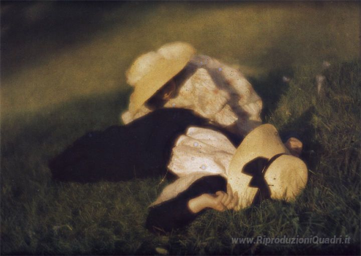 Ti offriamo una riproduzione artigianale su tela dell'opera famosa 'Miss Mary e Edeltrude situata in erba' di Heinrich Kuhn, dal Museo delle Riproduzioni.