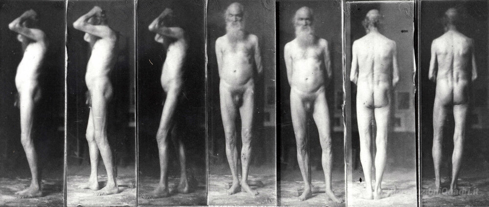 Ti offriamo una riproduzione artigianale su tela dell'opera famosa 'Ritratto di un uomo anziano nel nudo' di Thomas Eakins, dal Museo delle Riproduzioni.