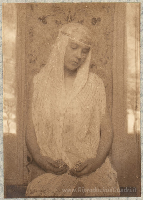 Ti offriamo una riproduzione artigianale su tela dell'opera famosa 'The Oriental Sposa' di Frank Eugene, dal Museo delle Riproduzioni.