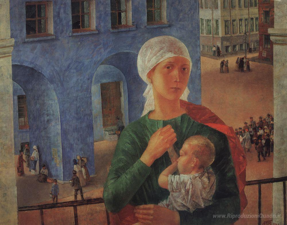 Ti offriamo una riproduzione artigianale su tela dell'opera famosa '1918 a Pietrogrado' di Kuzma Petrov-Vodkin, dal Museo delle Riproduzioni.