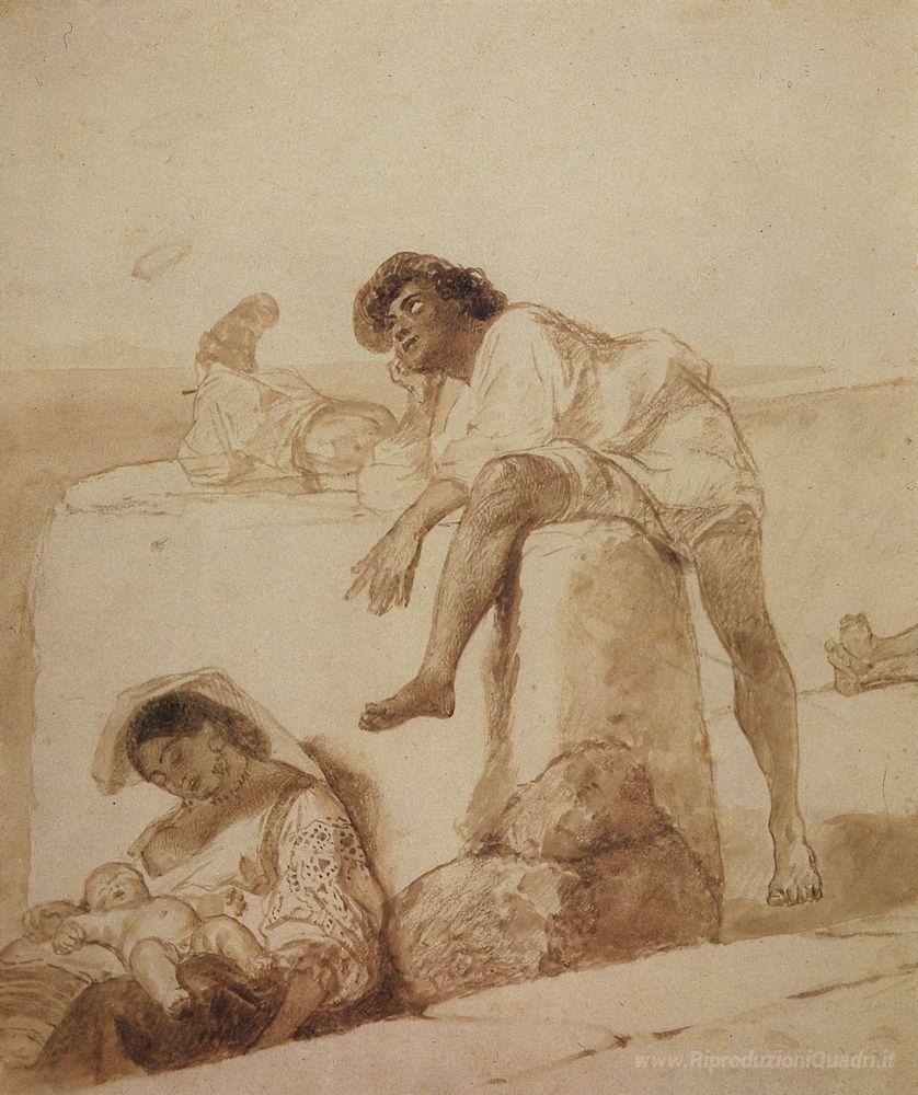 Benvenuti nel nostro esclusivo catalogo di dipinti a olio italiani, dove l’arte si fonde con la vita quotidiana. Oggi vi presentiamo l’affascinante opera A mezzogiorno dell’artista maestro Karl Bryullov, un'eccellenza del Romanticismo italiano. Questo capolavoro, realizzato con una tecnica a olio raffinata e meticolosa, è un inno alla luce e al calore del mezzogiorno mediterraneo, immortalando la bellezza di un momento effimero attraverso colori vibranti e dettagli straordinari.