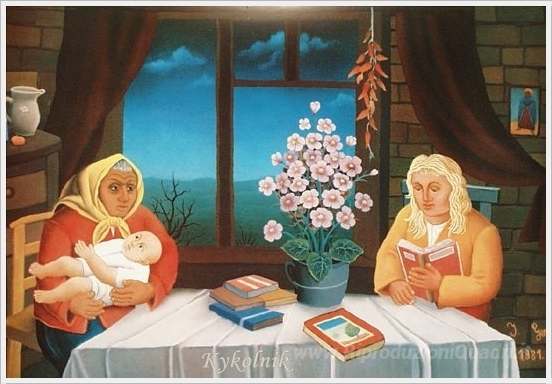 Ti offriamo una riproduzione artigianale su tela dell'opera famosa 'A tavola' di Ivan Generalic, dal Museo delle Riproduzioni.