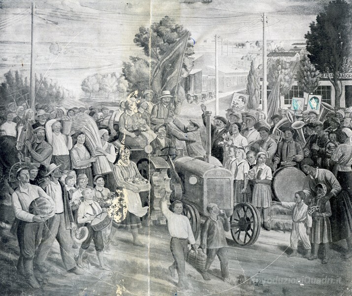 Ti offriamo una riproduzione artigianale su tela dell'opera famosa 'Affreschi di Kharkiv Chervonozavodsky teatro - La festa del racc' di Mykhailo Boichuk, dal Museo delle Riproduzioni.