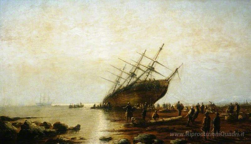 Ti offriamo una riproduzione artigianale su tela dell'opera famosa 'Aground nave' di James Webb , dal Museo delle Riproduzioni.