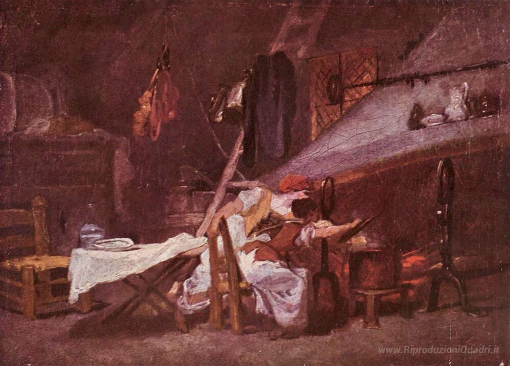 Ti offriamo una riproduzione artigianale su tela dell'opera famosa 'Ai fornelli' di Jean-Honore Fragonard, dal Museo delle Riproduzioni.