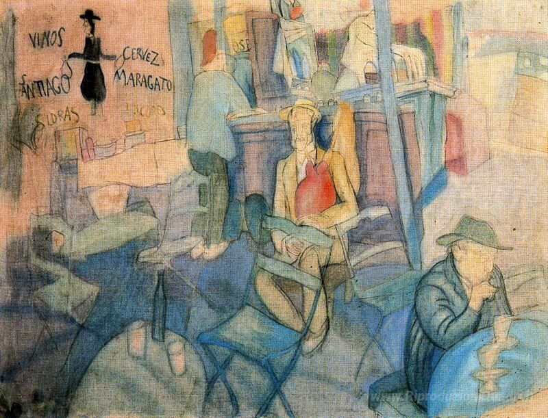 Ti offriamo una riproduzione artigianale su tela dell'opera famosa 'Al bar' di Carlos Saenz de Tejada, dal Museo delle Riproduzioni.