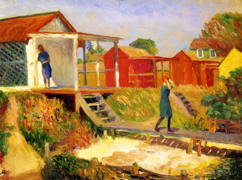 Ti offriamo una riproduzione artigianale su tela dell'opera famosa '?Alla spiaggia' di William James Glackens, dal Museo delle Riproduzioni.