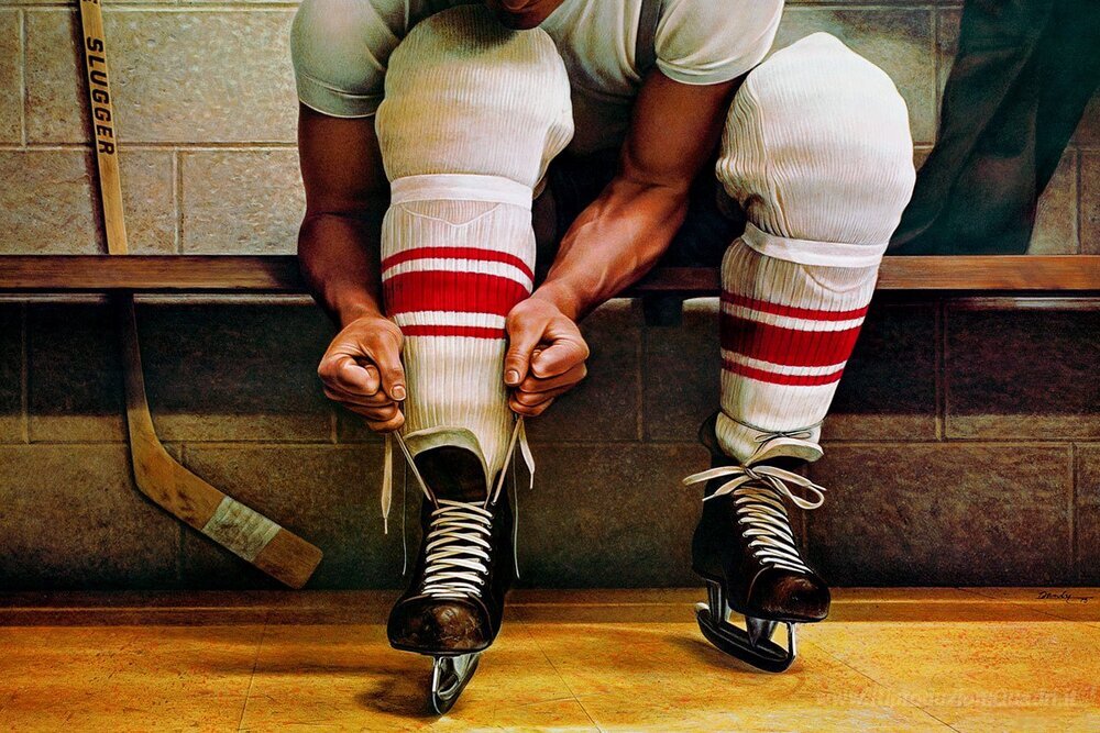 Ti offriamo una riproduzione artigianale su tela dell'opera famosa 'Allacciarsi' di Ken Danby, dal Museo delle Riproduzioni.