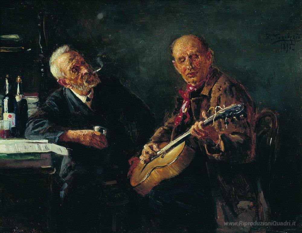 Ti offriamo una riproduzione artigianale su tela dell'opera famosa 'Amici' di Konstantin Makovsky, dal Museo delle Riproduzioni.