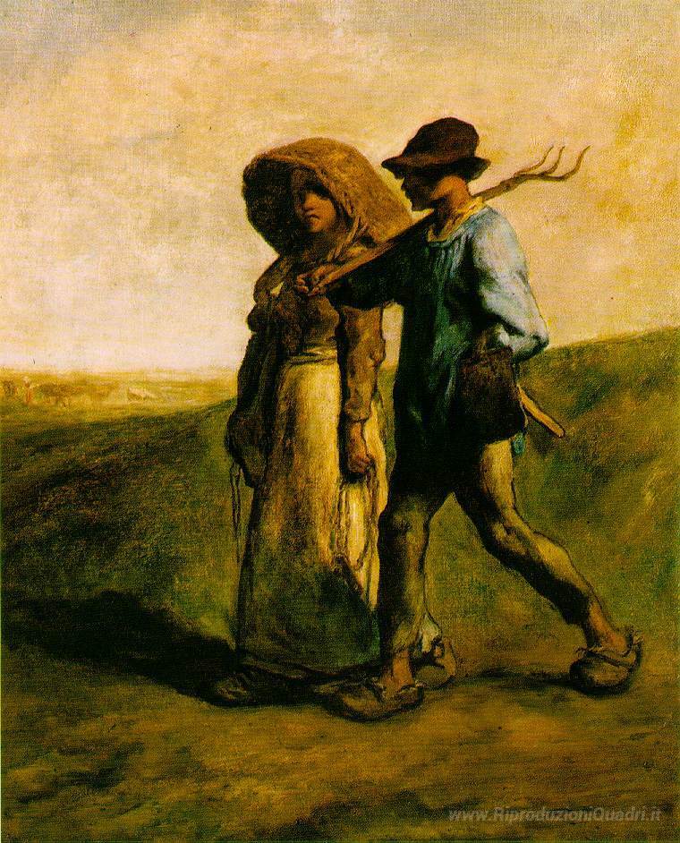 Ti offriamo una riproduzione artigianale su tela dell'opera famosa 'Andare a lavorare' di Jean-Francois Millet, dal Museo delle Riproduzioni.