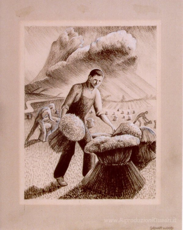 Ti offriamo una riproduzione artigianale su tela dell'opera famosa 'Approaching Storm' di Grant Wood, dal Museo delle Riproduzioni.
