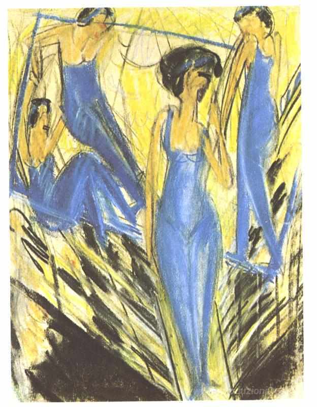 Ti offriamo una riproduzione artigianale su tela dell'opera famosa 'Artisti Vestito blu' di Ernst Ludwig Kirchner, dal Museo delle Riproduzioni.