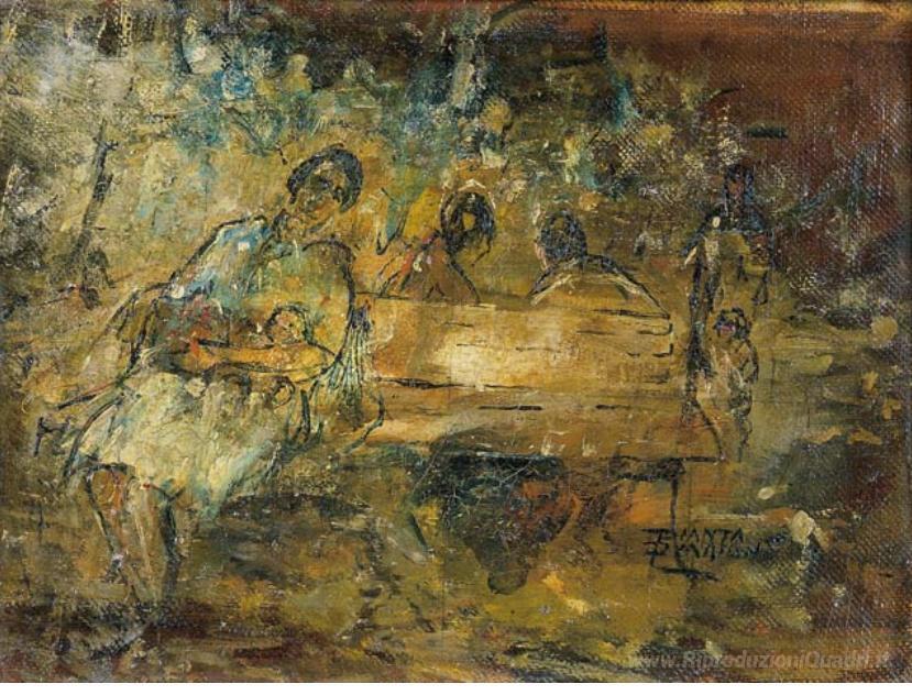 Scoprite l'incanto del mondo dell'arte con Badanti nel parco, un'opera straordinaria di Theophrastos Triantafyllidis, rinomato artista italiano che fonde maestria tecnica e profonda sensibilità umana. Triantafyllidis, con il suo background culturale ricco di influenze mediterranee, riesce a trasmettere emozioni palpabili attraverso le sue pennellate fluide e armoniose, creando scene che raccontano storie di vita quotidiana.