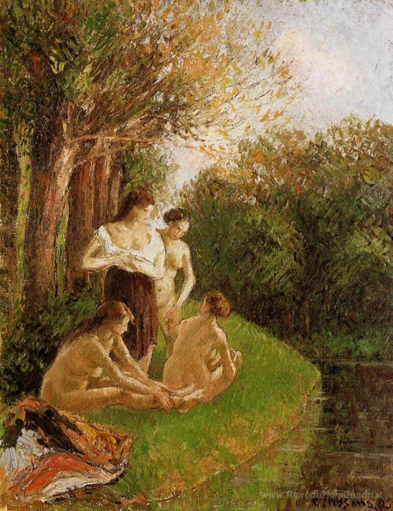 Ti offriamo una riproduzione artigianale su tela dell'opera famosa 'Bagnanti 2' di Camille Pissarro, dal Museo delle Riproduzioni.