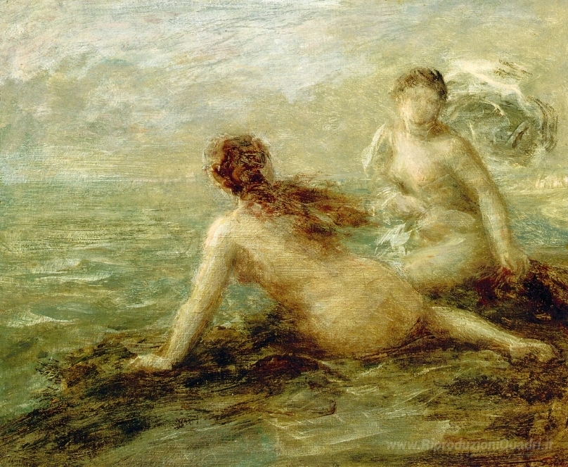Ti offriamo una riproduzione artigianale su tela dell'opera famosa 'Bagnanti by the Sea' di Henri Fantin-Latour, dal Museo delle Riproduzioni.