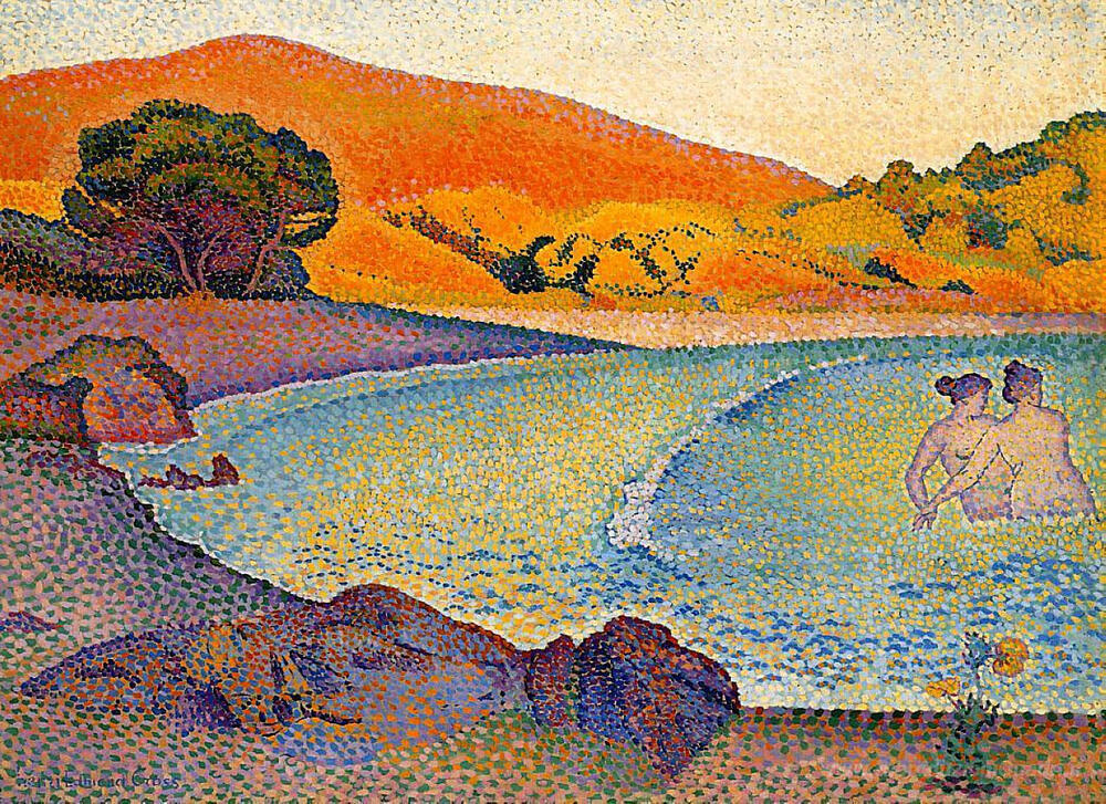 Ti offriamo una riproduzione artigianale su tela dell'opera famosa 'Bagnanti' di Henri-Edmond Cross, dal Museo delle Riproduzioni.