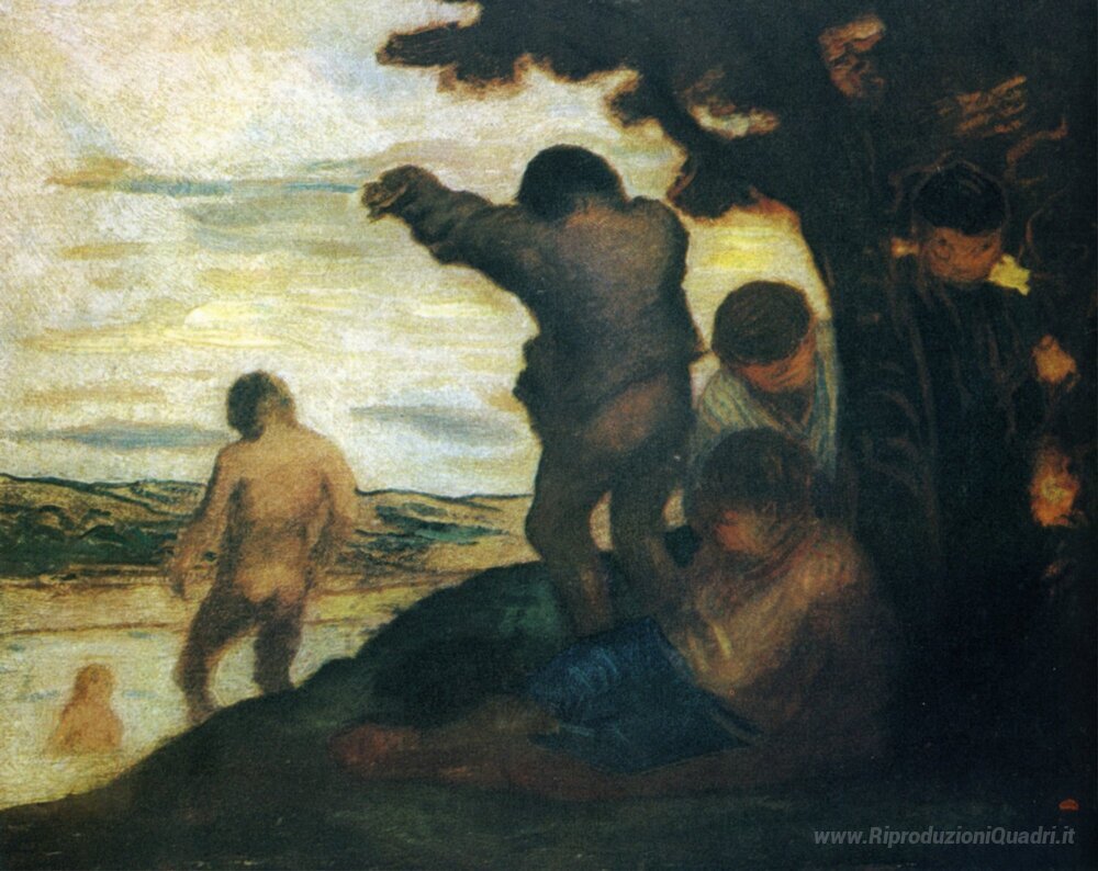 Ti offriamo una riproduzione artigianale su tela dell'opera famosa 'Bagnanti' di Honore Daumier, dal Museo delle Riproduzioni.