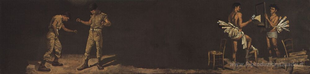 Ti offriamo una riproduzione artigianale su tela dell'opera famosa 'Ballando nella vita reale e in teatro' di Yiannis Tsaroychis, dal Museo delle Riproduzioni.