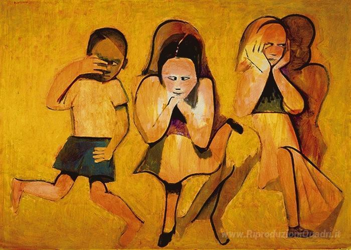 Ti offriamo una riproduzione artigianale su tela dell'opera famosa 'Bambini che giocano' di Charles Blackman, dal Museo delle Riproduzioni.