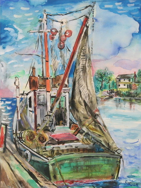 Ti offriamo una riproduzione artigianale su tela dell'opera famosa 'Barca da pesca, Rockport' di David Burliuk, dal Museo delle Riproduzioni.