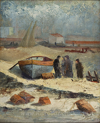 Ti offriamo una riproduzione artigianale su tela dell'opera famosa 'Barco e Pescadores' di Jose Pancetti, dal Museo delle Riproduzioni.