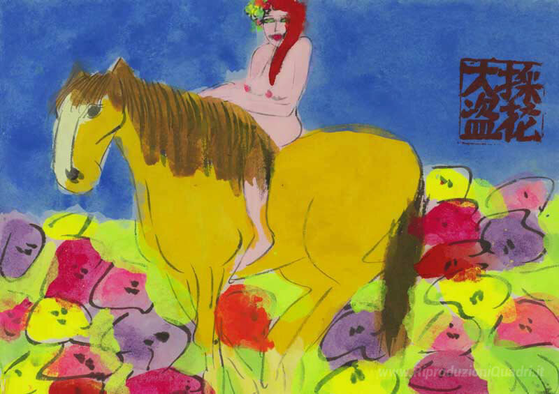 Ti offriamo una riproduzione artigianale su tela dell'opera famosa 'Bare Back Rider' di Walasse Ting, dal Museo delle Riproduzioni.