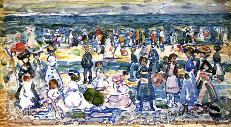Ti offriamo una riproduzione artigianale su tela dell'opera famosa 'Bassa marea, Revere Beach' di Maurice Prendergast, dal Museo delle Riproduzioni.