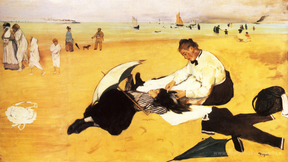 Ti offriamo una riproduzione artigianale su tela dell'opera famosa 'Beach Scene' di Edgar Degas, dal Museo delle Riproduzioni.